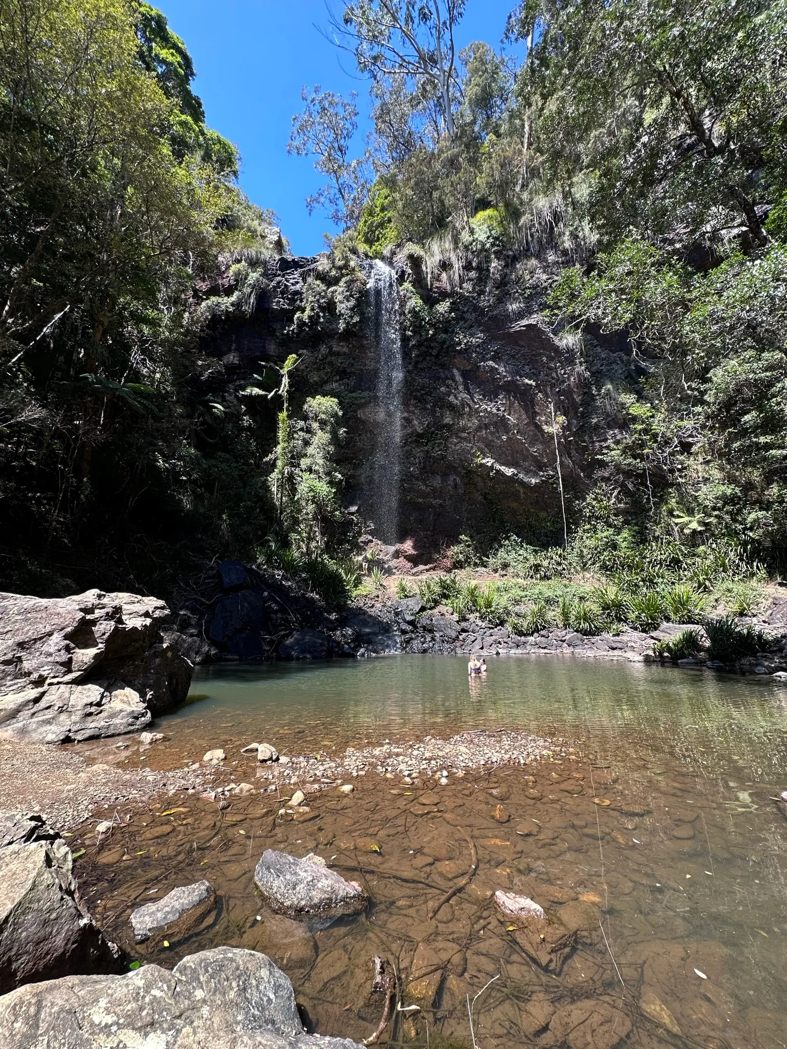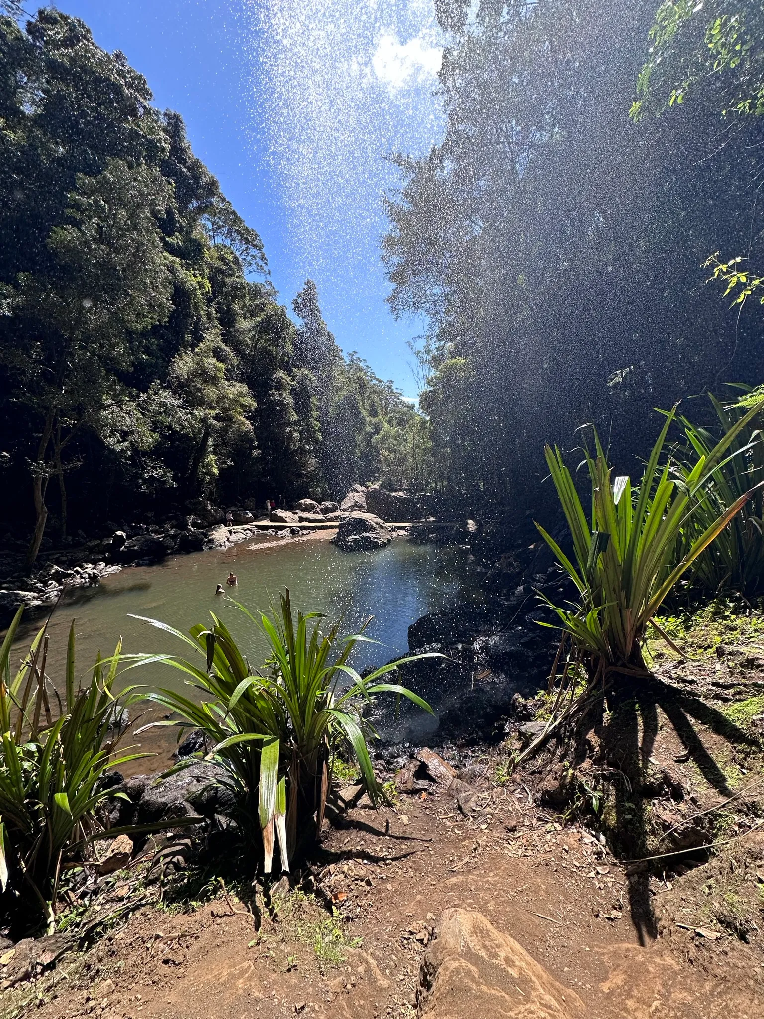 Elértük ezután az iker vizesest, ami egy nagyon kellemes es gyönyörű mini medencébe zubog, amiben épp fürödtek is. Be lehetett menni a vízesés mögé is, ami külön elmeny volt.