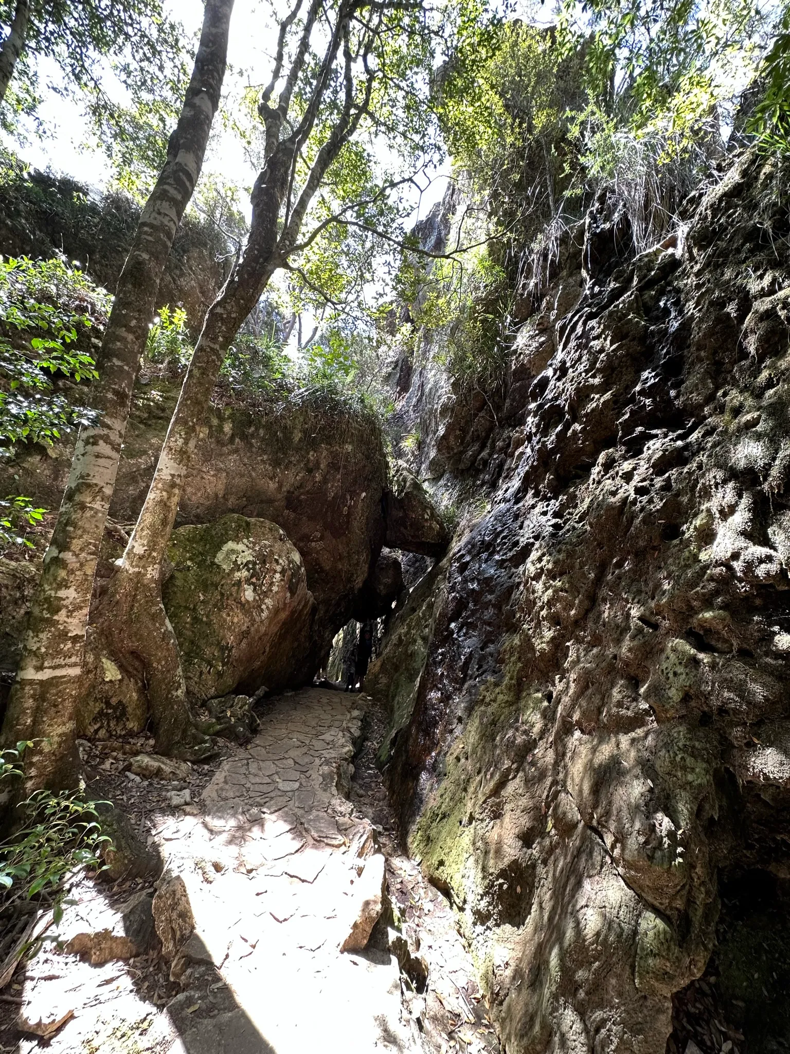Megérkeztünk, fantasztikus kilátás fogadott, mivel hegytetőn voltunk. Elindultunk a túra úton, ami fantasztikus környezetbe vitt. Olyan érzésem volt, mintha óriások földjén járnánk. Óriás kövek, óriás fák, minden óriás. Az út maga hatalmas kövekkel volt néhol kirakva ami csak fokozta azt az érzést mintha törpék lennénk az óriások földjén. Egy ütembe jött velünk egy idős házaspár, akik állítólag láttak kígyót igy szóltak, hogy figyeljünk hova lepunk. Mi nem láttunk egyet sem, vagy csak simán halk léptű Annánknak köszönhetően jól elijesztette őket :D